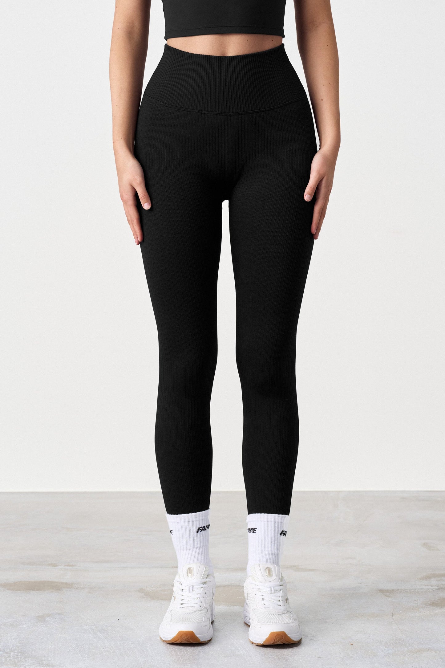 Ribbed seamless tights combine style and comfort. Perfect for Athleisure or everyday comfort. Minimalism and ribbed texture are a safe choice. The high waist and soft, flexible 4-way stretch fabric provide a comfortable and supportive feel all day long. Perfect for both training and everyday wear.