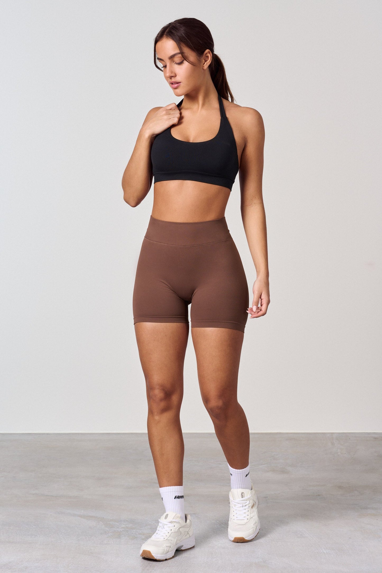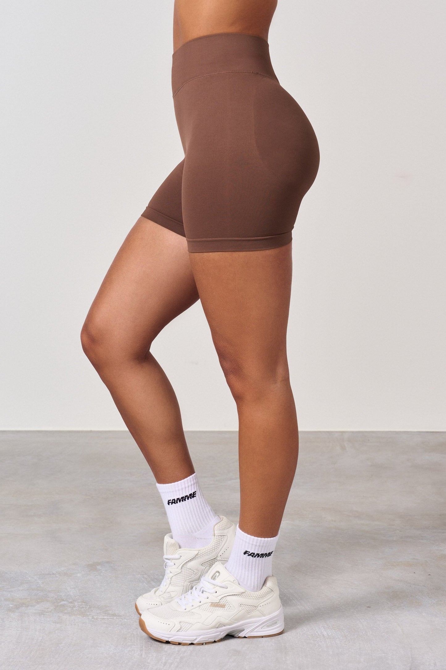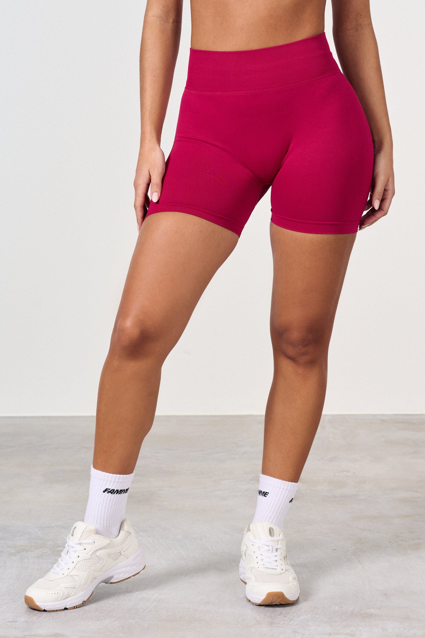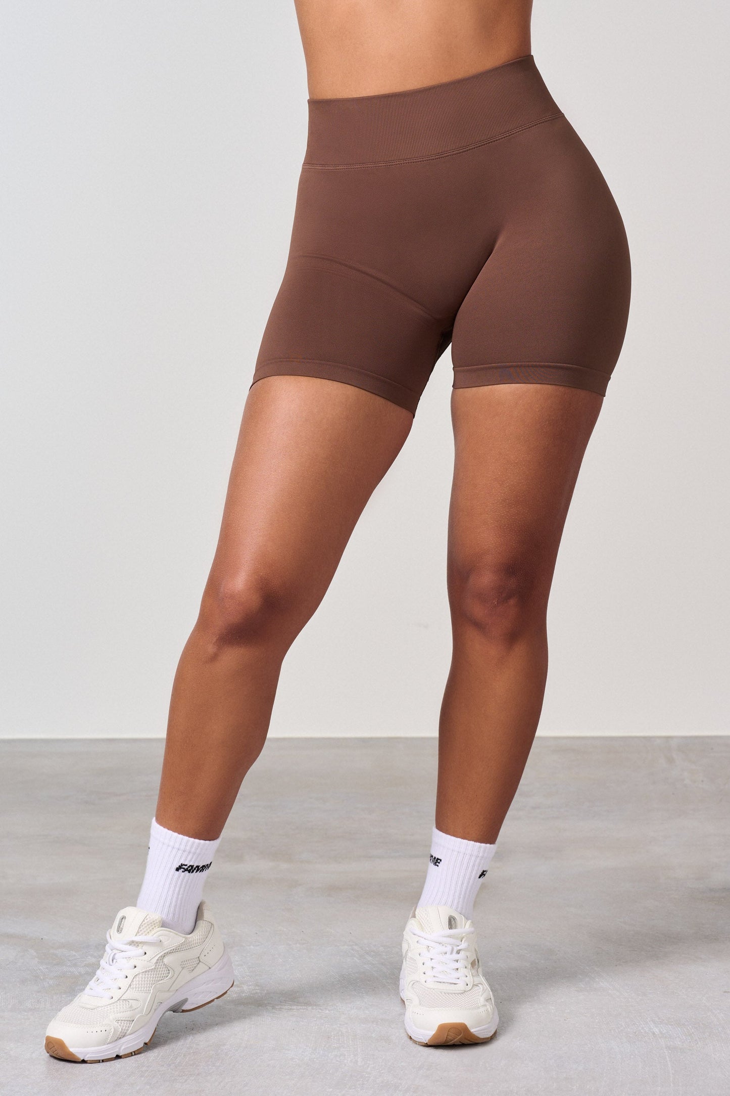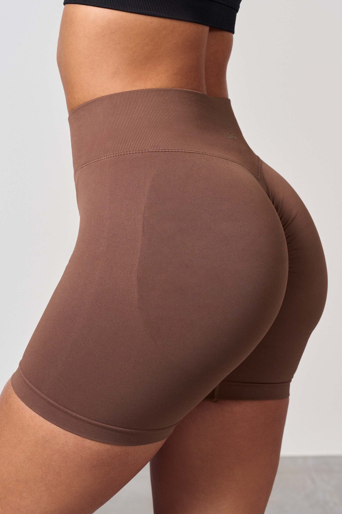High waist training shorts with a scrunch effect. The new scrunch effect gives the buttocks a natural, beautiful fit, smooth skin and no folds. The scrunch shorts give the desired effect on all buttocks, but you barely notice that they have a scrunch. The shorts have no front seam and fit well around the waist. The shorts are slightly shorter in the waist than the tights.