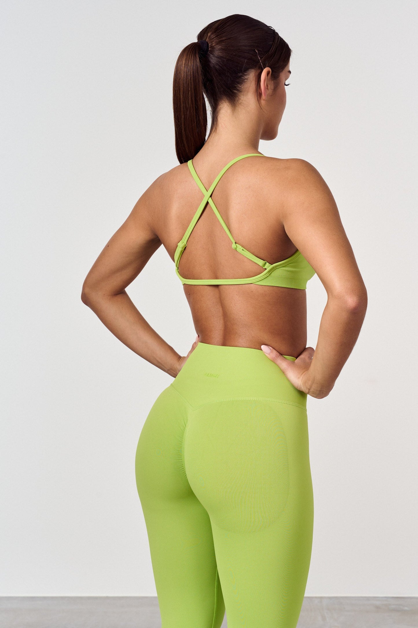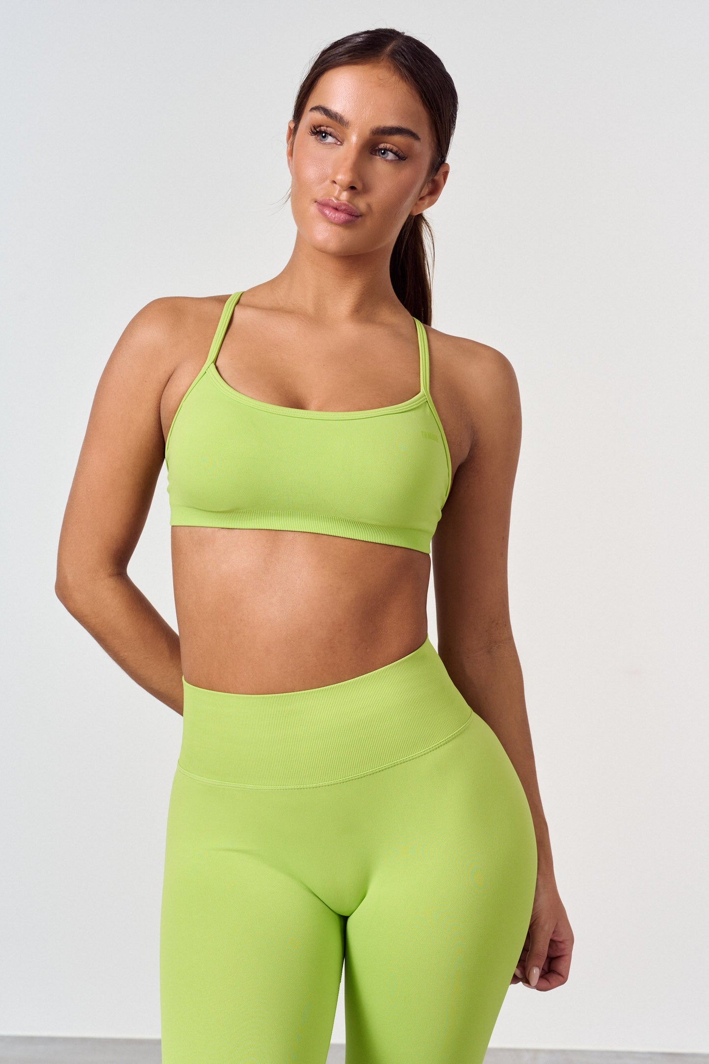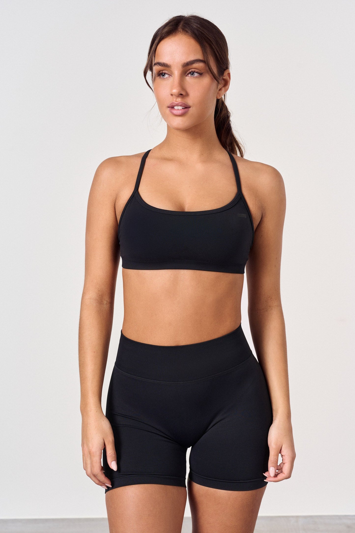Sports bra for strength training with removable inserts. The material is breathable and dries quickly. The top works well for low and medium intensity training. The cross back straps can be tightened. Matches with Refine Tights or Refine Shorts.