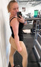 După ce am citit recenziile altora, am cumpărat colanții într-o mărime mai mare decât folosesc de obicei la Famme. Chiar și cu o mărime mai mare decât de obicei, a fost greu de îmbrăcat, iar odată ce era pe mine, am simțit că nu ar fi confortabil pentru antrenament. Pur și simplu îmi era frică să nu se rupă dacă mă mișcam. L-am returnat și prefer să cumpăr colanții peach scrunch normali în care pot să mă antrenez confortabil în mărimea mea obișnuită. Am cumpărat colanții în negru / verde, care erau incredibil de frumoși ca și culoare, așa că mi-a părut foarte rău că nu se potriveau.